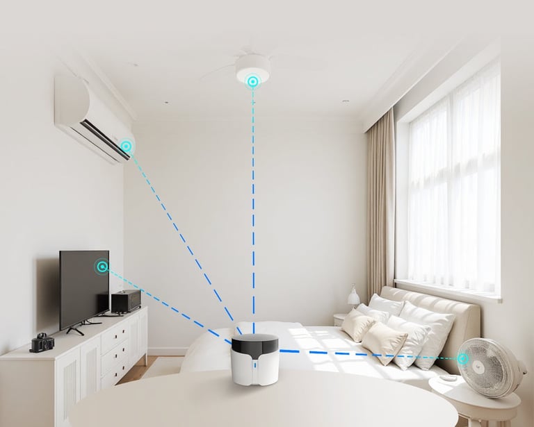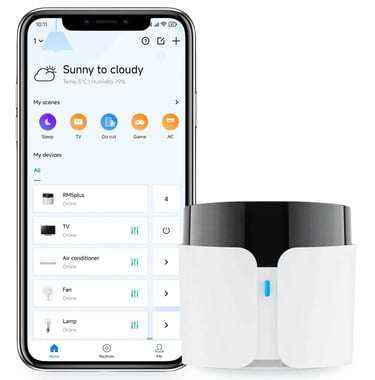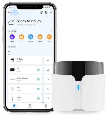 Notre module télécommande universelle connectée pilote intelligemment votre TV, ventilateur, chaine hifi, stores, climatiseur et plus de 5000 autres appareils contrôlés par infra-rouge. Même à l'extérieur, gardez le contrôle grâce au Wi-Fi. Commandez par la voix avec Alexa ou Google, et automatisez tout pour un confort ultime. Un appareil n'apparait pas dans la liste ? Son mode 'apprentissage' le reconnaîtra instantanément.
